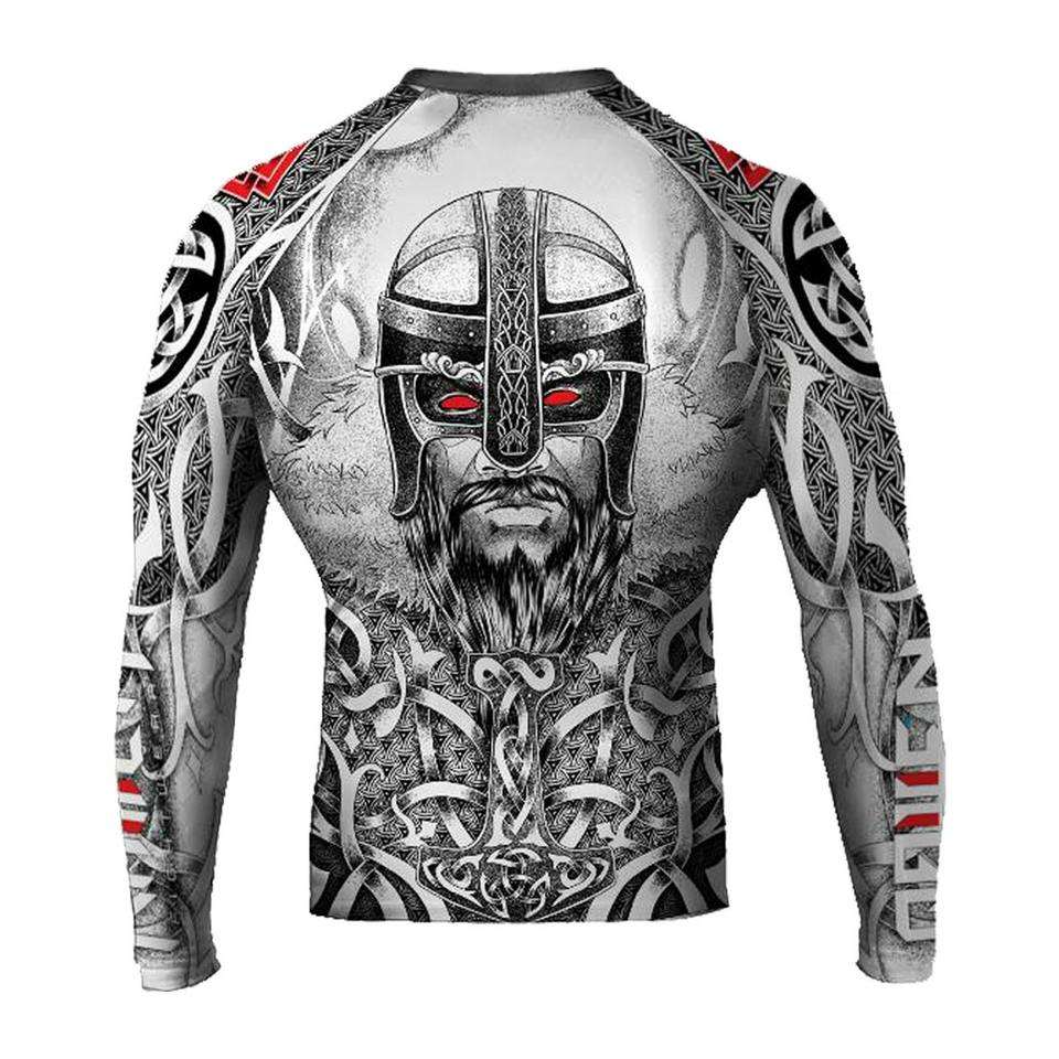 เสื้อรัดกล้ามเนื้อแขนยาวสำหรับผู้ชาย ลายกราฟิกชีวกลศาสตร์นักรบ หมาป่า อัศวิน หมี สำหรับออกกำลังกาย เล่นกีฬา ฝึกซ้อมในยิม