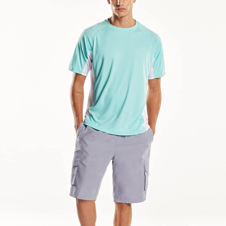 เสื้อรัดรูปแขนยาวสำหรับผู้ชายเสื้อแห้งเร็วป้องกันรังสียูวีสำหรับออกกำลังกายเล่นเซิร์ฟ