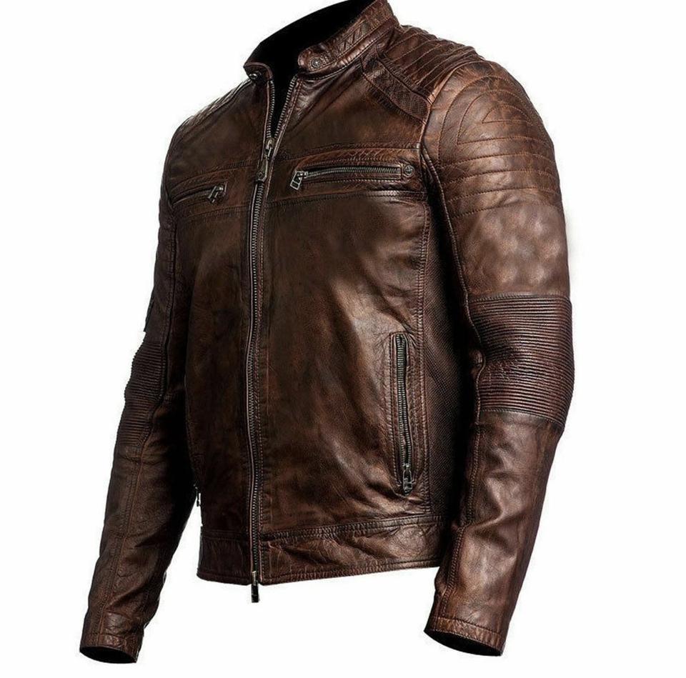 Mens Real Leather Cafe Racer Biker Jacket Vintage Brown Retro Style Plain Windbreaker Custom Waterproof Breathable Jacket