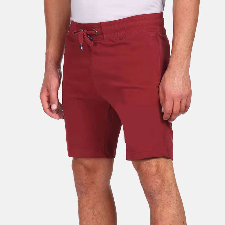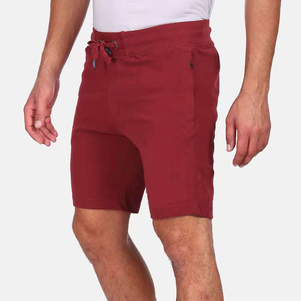 กางเกงขาสั้นผู้ชายสีแดง โพลีเอสเตอร์ 100% แบบเรียบง่าย สวมใส่สบายๆ ในฤดูร้อน มีเชือกผูกเอว สไตล์สตรีทแวร์ ระบายอากาศได้ดี แห้งเร็ว ใส่สบาย เหมาะสำหรับใส่ทุกวัน