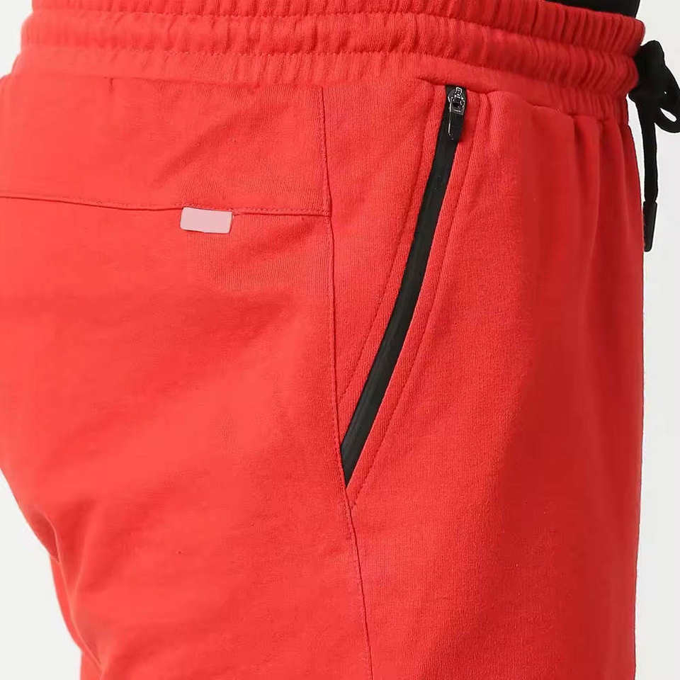 กางเกงขาสั้นกีฬาผู้ชายสีแดง เอวยางยืด ผ้าเนื้อเดียว ใส่สบาย เหมาะสำหรับออกกำลังกาย วิ่ง และเล่นกีฬา ระบายอากาศได้ดี