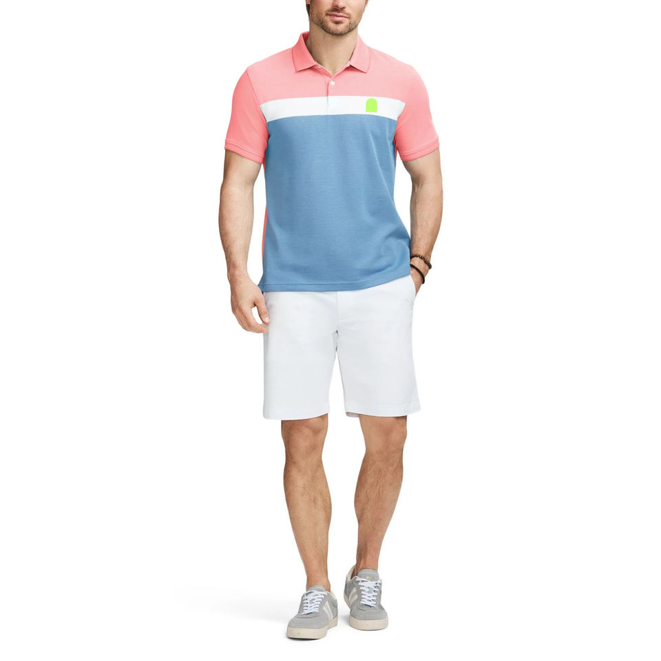 เสื้อโปโลผู้ชายทรงปกติหลากสี เสื้อโปโลลำลองผู้ชายแขนสั้นแบบคัลเลอร์บล็อก ขนาดสั่งตัดได้ ผ้าฝ้ายคุณภาพสูง