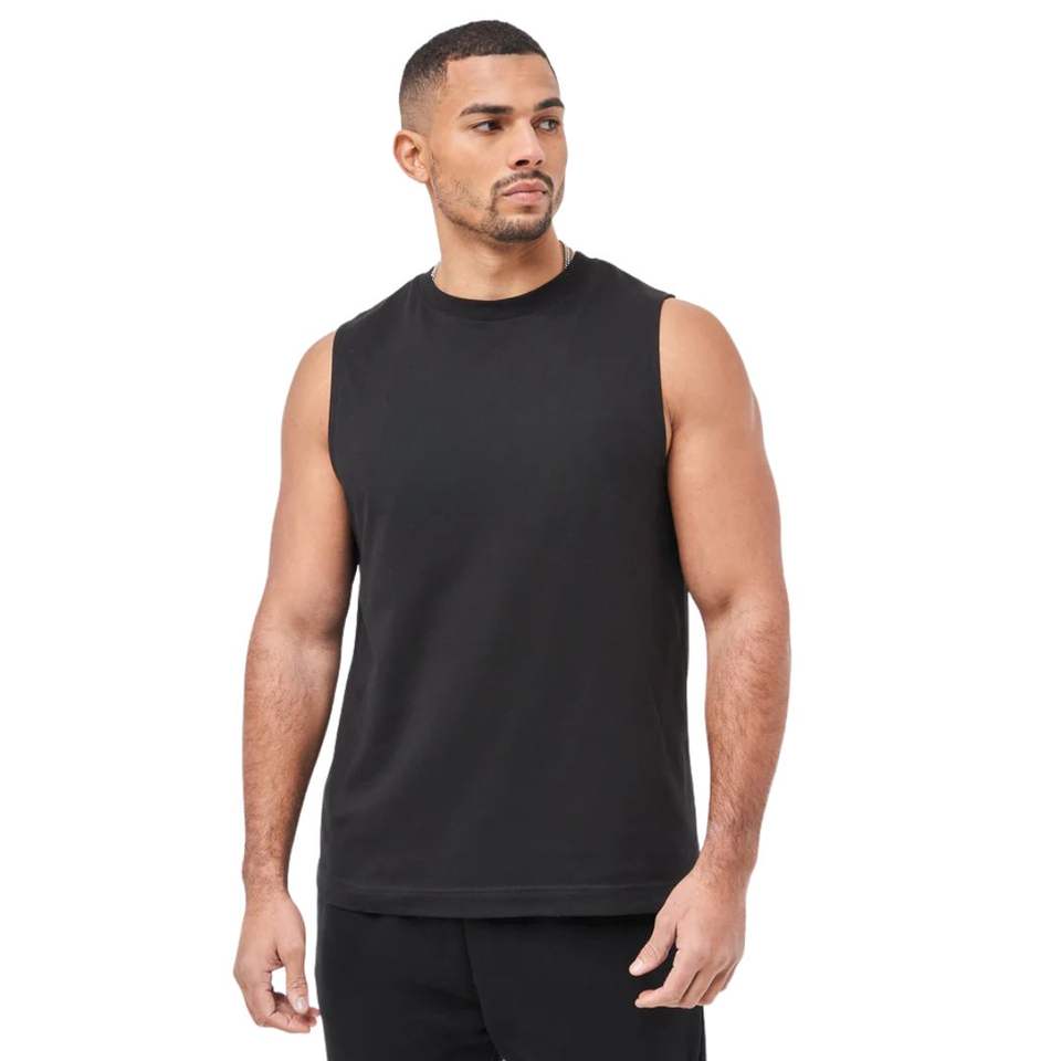 Mens Relaxed Fit Black Tank Top Soft Cotton Sleeveless Shirt with Subtle Logo Design Great for Everyday Casual or Gym Wear