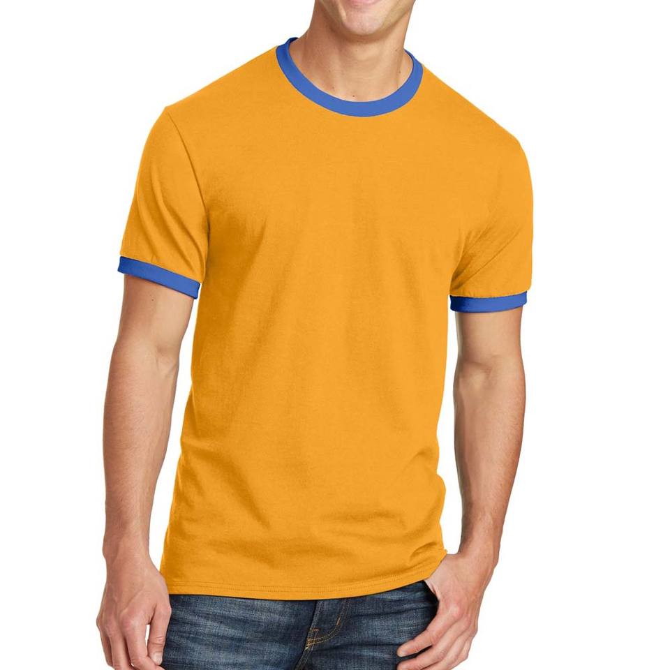 เสื้อยืดแขนสั้นบุรุษ Ringer สีเทาสีน้ำเงินเข้มขนาดกลางใหญ่