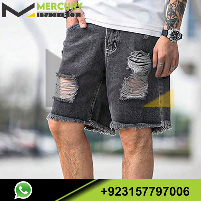 บุรุษฉีกขาดดิบตัดเอวสูงขาตรงกางเกงขาสั้นผ้ายีนส์ขายส่งกางเกงขาสั้นผ้ายีนส์ผู้ชาย