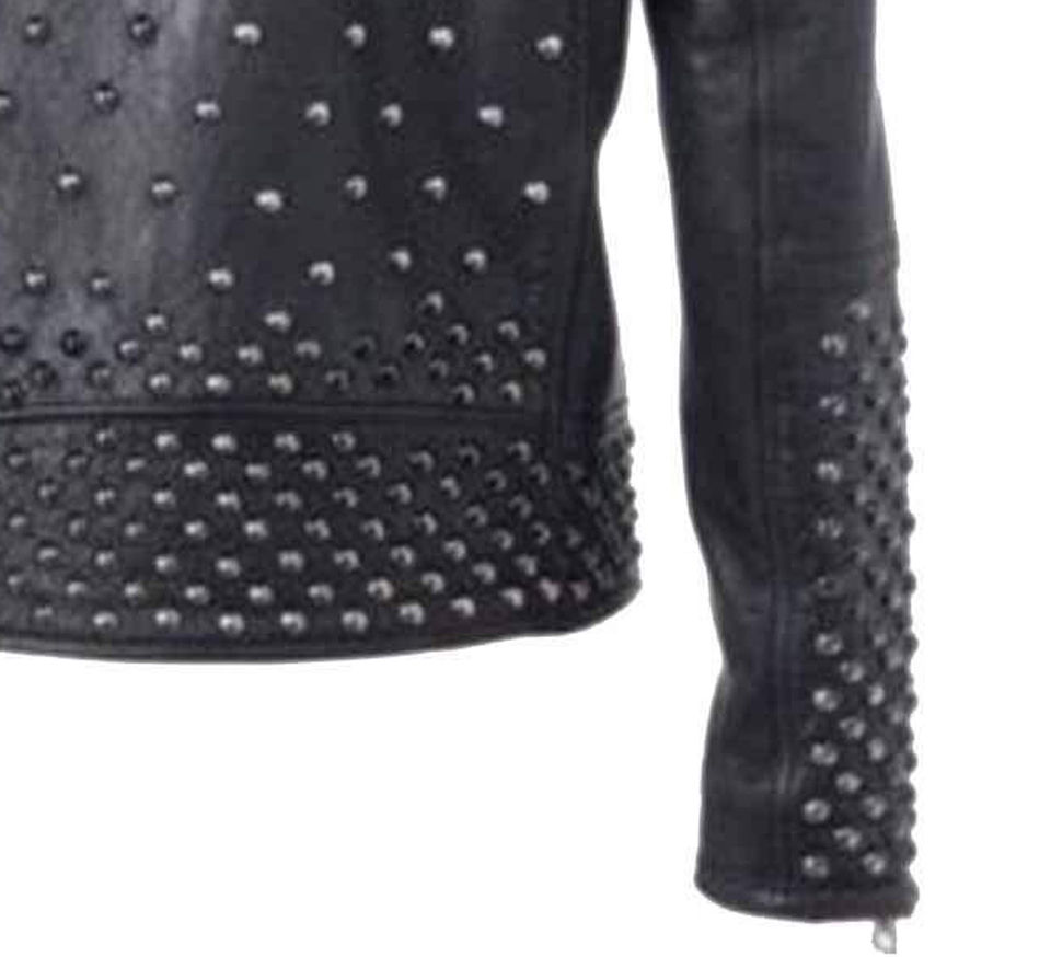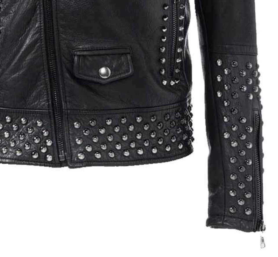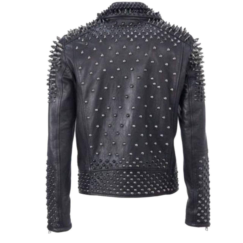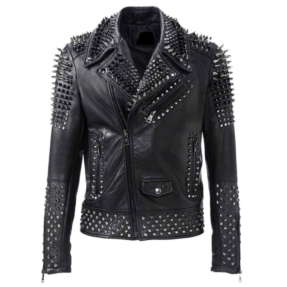 แจ็กเก็ตหนังประดับหมุดสำหรับผู้ชายแนวร็อคพังค์ประดับหมุดทรงสลิมฟิตพร้อมซิปปิดแขนยาวสไตล์โลหะหนัก