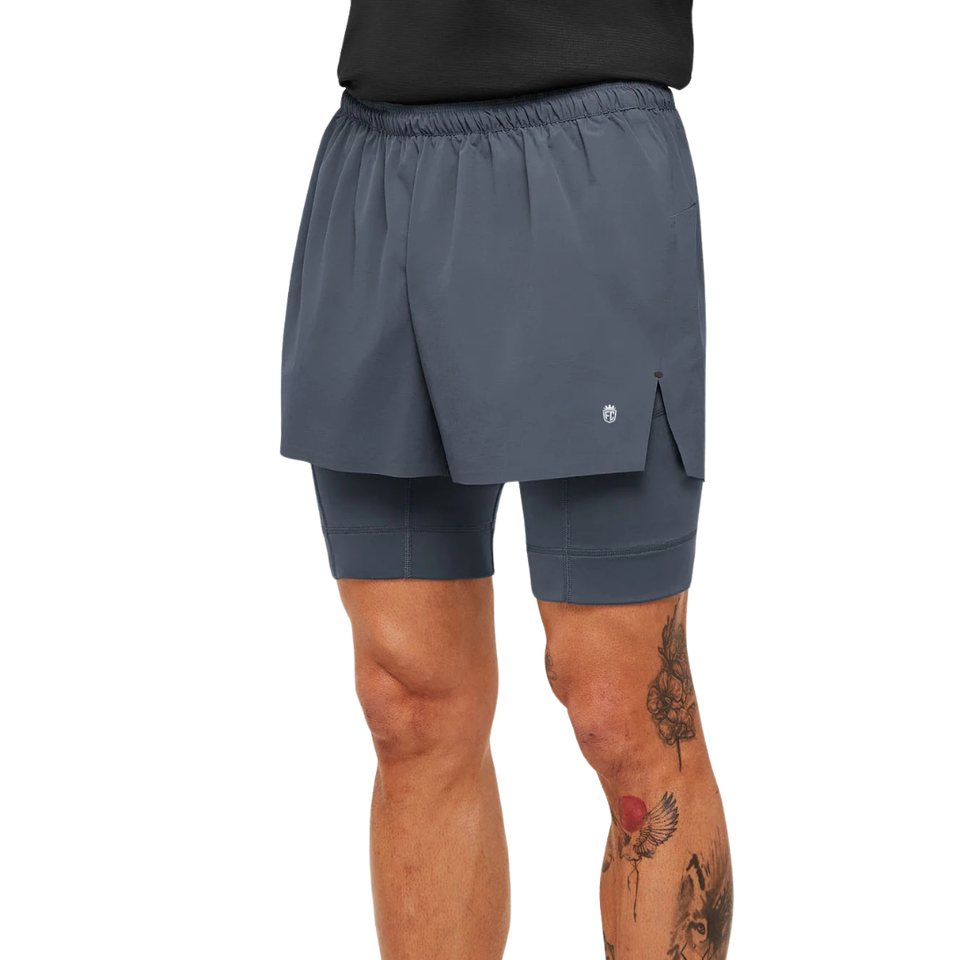 กางเกงวิ่งผู้ชายรุ่น Elite 2 in 1 ความยาว 5 นิ้ว สีไทเทเนียมบลู ระบายอากาศได้ดี แห้งเร็ว เหมาะสำหรับออกกำลังกายและเล่นกีฬา