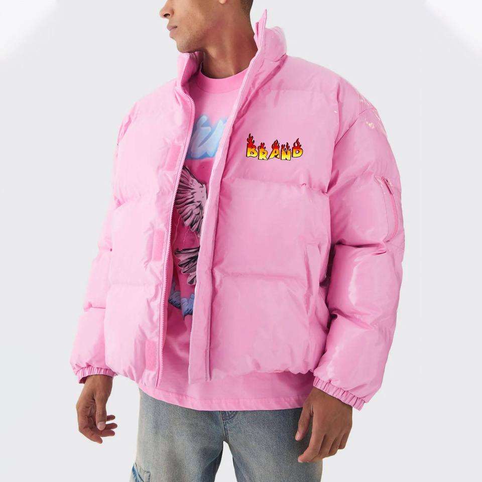 เสื้อแจ็คเก็ตพัฟเฟอร์สีส้มสนิมสำหรับผู้ชาย พร้อมฮู้ดสีดำตัดกัน เสื้อโค้ทกันหนาวแบบหนา เสื้อแจ็คเก็ตบับเบิ้ลลำลองสำหรับใส่กลางแจ้ง เสื้อคลุมกันหนาวมีสไตล์บุใย