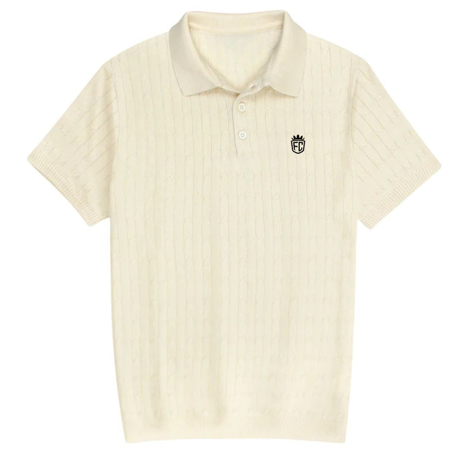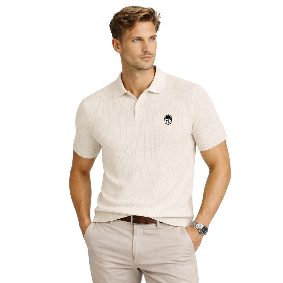 เสื้อโปโลถักลายเคเบิลสำหรับผู้ชาย ผ้าคอตตอนพรีเมียม แขนสั้น ทรงคลาสสิก สวมใส่สบาย สไตล์ลำลองและสมาร์ท