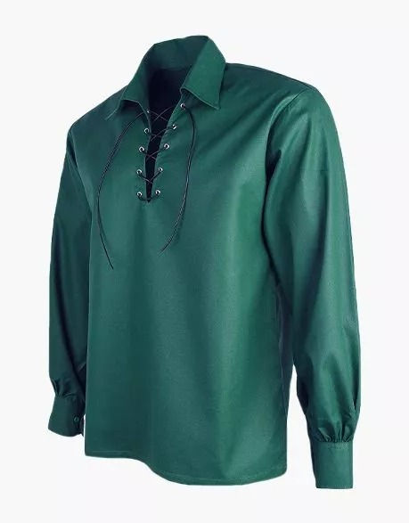 เสื้อเชิ้ตกิลลีสไตล์สก็อตสำหรับผู้ชาย แนวเจค็อบไลท์ ยุคกลาง ยุคเรอเนซองส์ ชุดโจรสลัด แขนยาว ผ้าฝ้าย 100% เสื้อเชิ้ตผ้าฝ้ายสไตล์เจค็อบไลท์