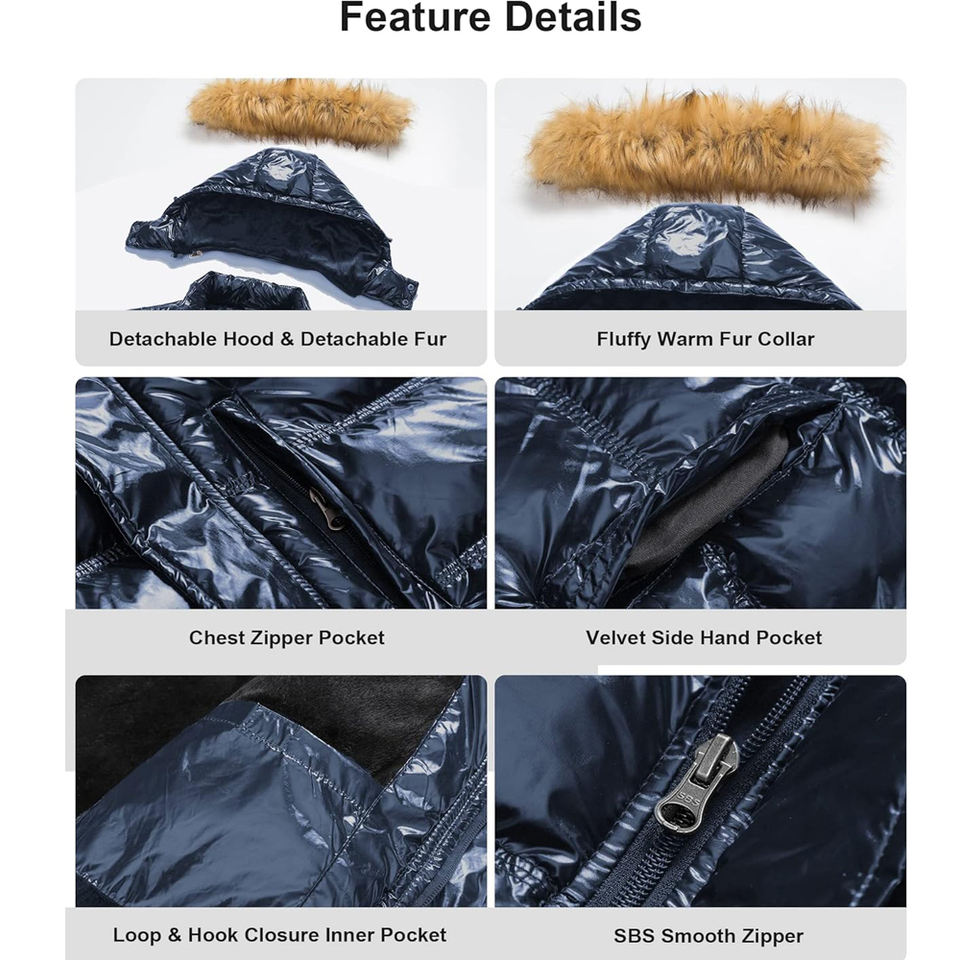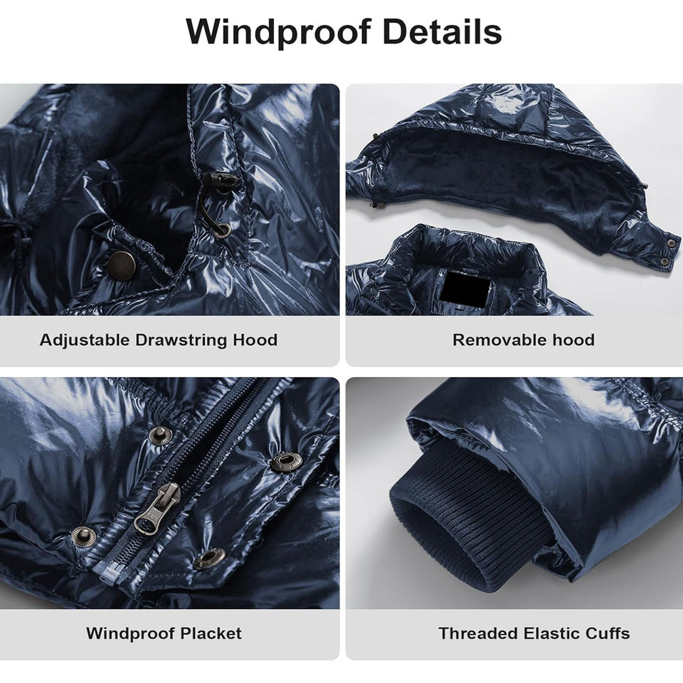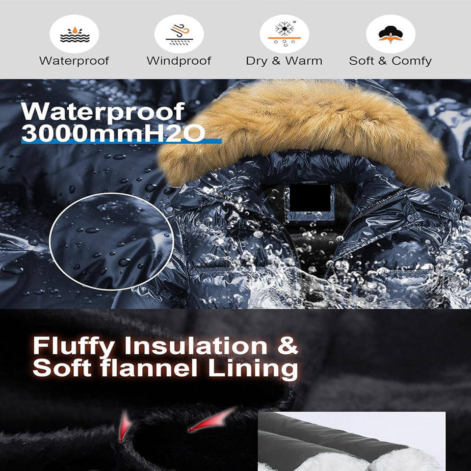 แจ็กเก็ตขนปุยสีกรมท่าสำหรับผู้ชาย, เสื้อคลุมกันลมให้ความอบอุ่นสำหรับเล่นสกีกันลมกันน้ำเสื้อแจ็กเก็ตขนเทียมที่ถอดออกได้สำหรับฤดูหนาว