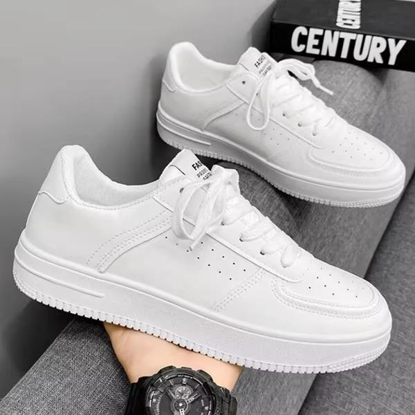 รองเท้าหนังสำหรับผู้ชาย, รองเท้ากีฬาสีขาวล้วนข้อต่ำรองเท้าลำลองอเนกประสงค์สำหรับฤดูใบไม้ร่วงและฤดูหนาว