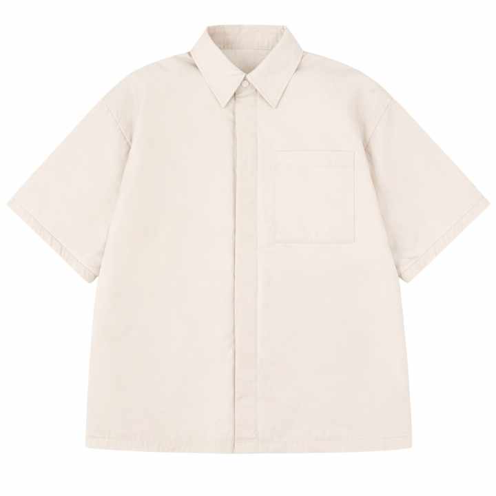 เสื้อเชิ้ตแขนสั้นบุนวมสำหรับผู้ชาย น้ำหนักเบา สไตล์ลำลองสำหรับฤดูร้อน เสื้อโอเวอร์เชิ้ตแฟชั่นทรงหลวม ระบายอากาศได้ดี เหมาะสำหรับใส่ทุกวัน
