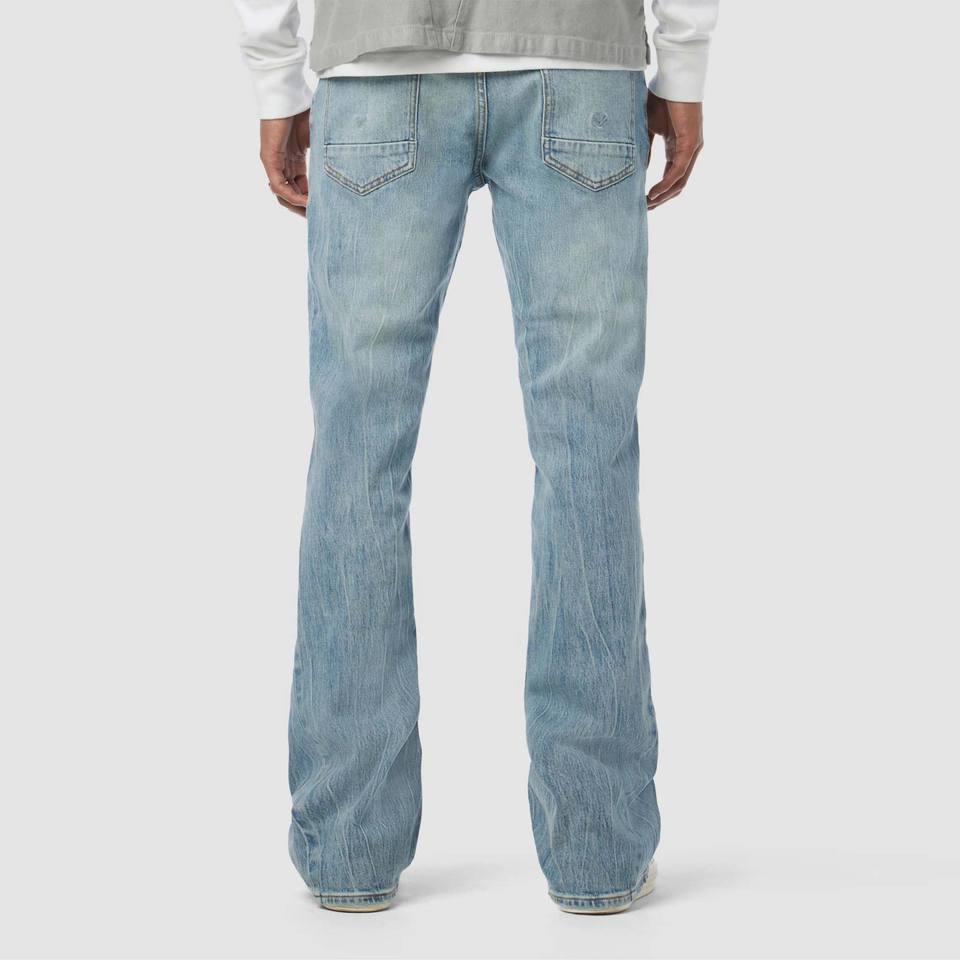กางเกงยีนส์ขาบานสำหรับผู้ชายกางเกงยีนส์ขาบานสีฟ้ามีเอกลักษณ์70s-Inspired พร้อมเอวสูงเหมาะสำหรับใส่ลำลองมีสไตล์