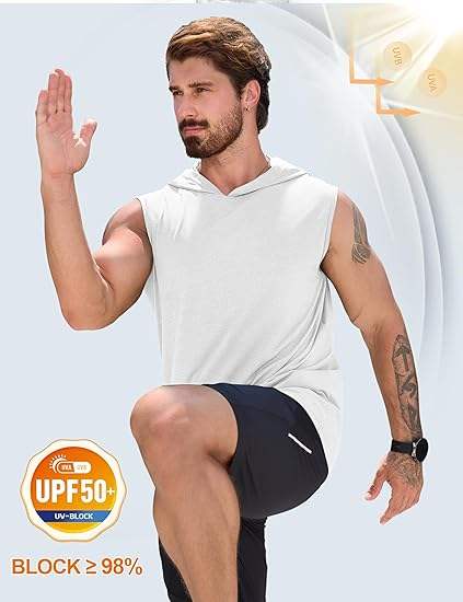 เสื้อฮู้ดแขนกุดผู้ชายมีฮู้ดน้ำหนักเบาและระบายอากาศได้ดีเหมาะสำหรับการฝึกออกกำลังกายหรือชุดลำลอง