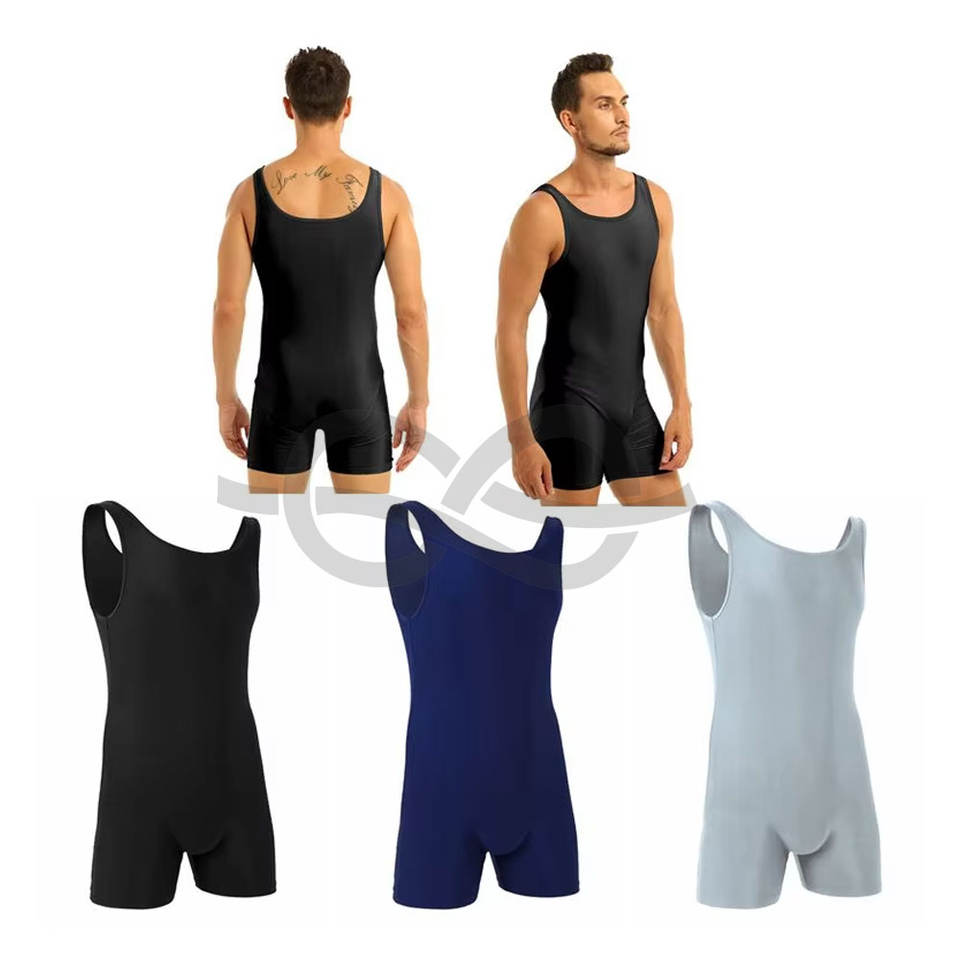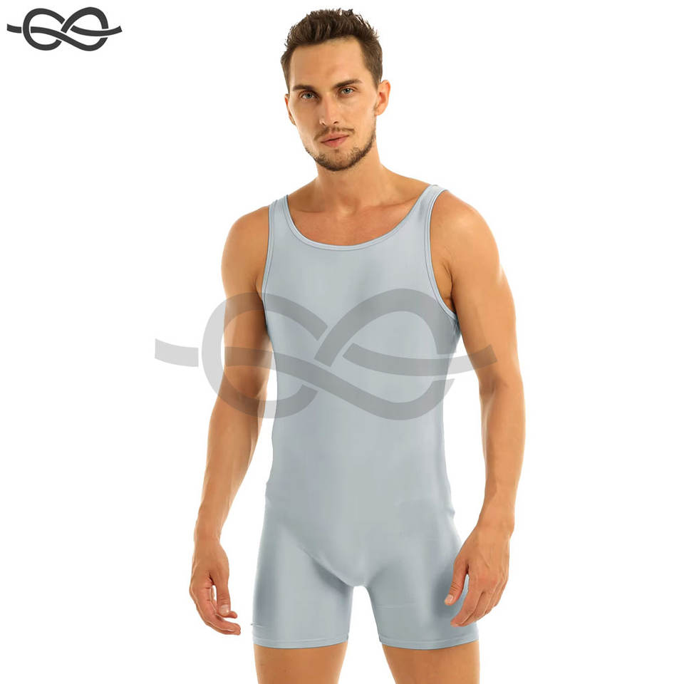 ชุดบอดี้สูทแขนกุดสำหรับผู้ชายกางเกงขาสั้นนักมวยเสื้อกล้ามสำหรับยิมนาสติกชุดว่ายน้ำฟิตเนสและการแสดง
