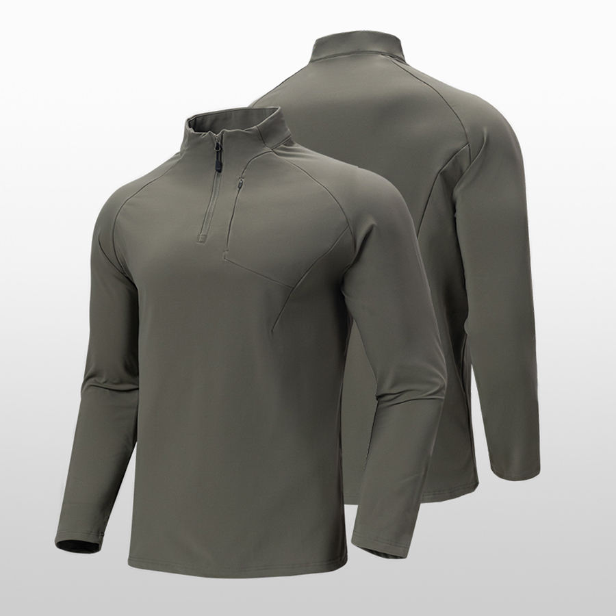 เสื้อยืดออกกำลังกายแขนยาวคอเต่าแบบมีซิปครึ่งตัว แห้งเร็ว ทรงเข้ารูป สำหรับผู้ชาย รับสกรีนโลโก้ ผ้าทอสีพื้น ไซส์ใหญ่ สไตล์ลำลอง