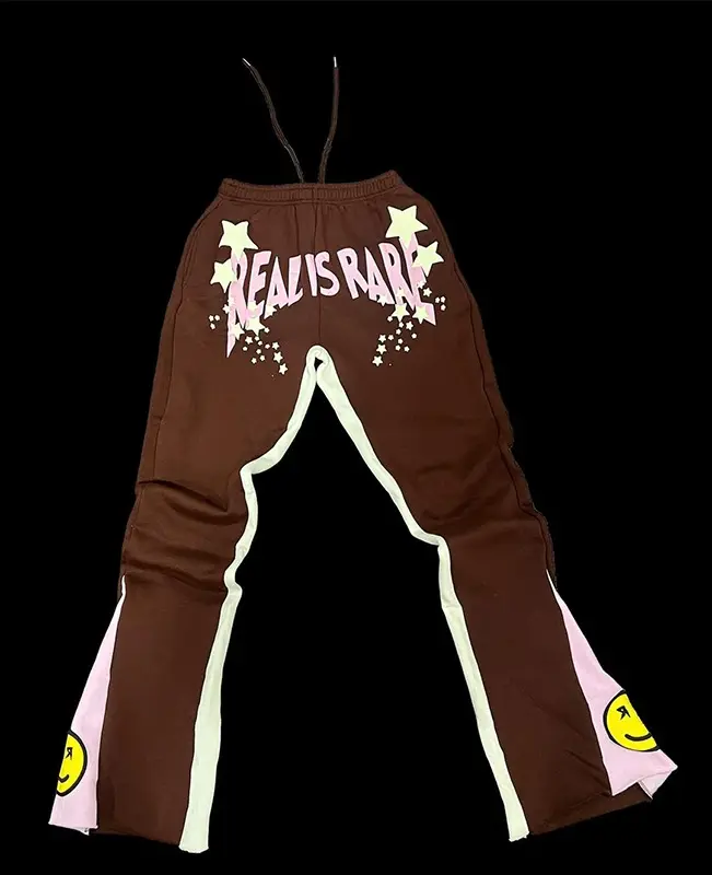กางเกงวอร์มลำลองผ้าฟลีซสำหรับผู้ชายกางเกงมีเชือกรูดกางเกงขายาวลายทางด้านข้างพิมพ์ลายยิ้ม