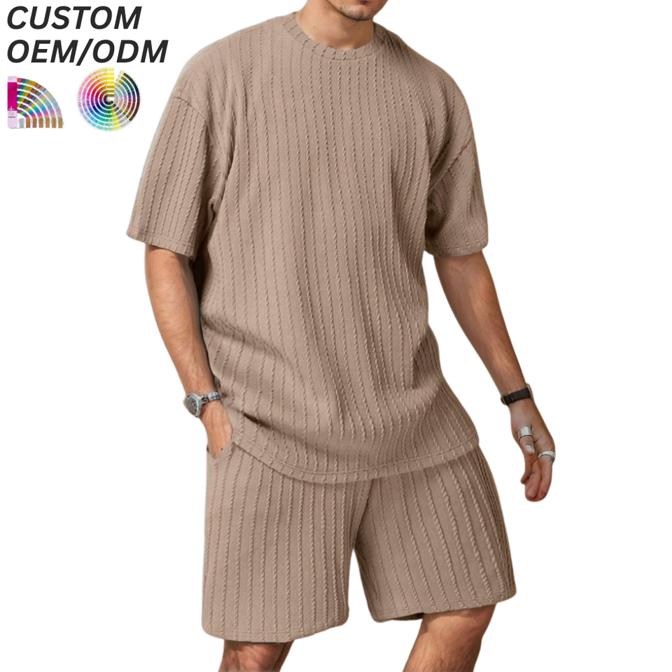 ชุดเสื้อยืดลำลองผ้าฝ้ายเนื้อแน่นสำหรับผู้ชาย สไตล์สตรีทแวร์ ชุดสองชิ้น ระบายอากาศได้ดี เหมาะสำหรับใส่ในชีวิตประจำวันช่วงฤดูร้อน รับผลิตแบบ OEM ODM พร้อมบริการสกรีนโลโก้ สำหรับขายส่ง