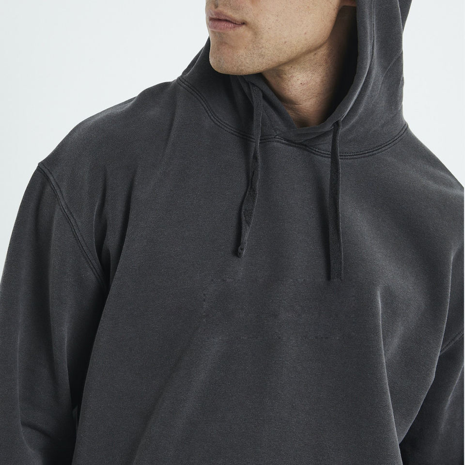 เสื้อฮู้ดดี้ผู้ชายสีเทาเข้มทรงโอเวอร์ไซส์ มีเชือกผูก ฮู้ดแบบมีกระเป๋าจิงโจ้ สไตล์ลำลอง เสื้อคลุมสตรีทแวร์