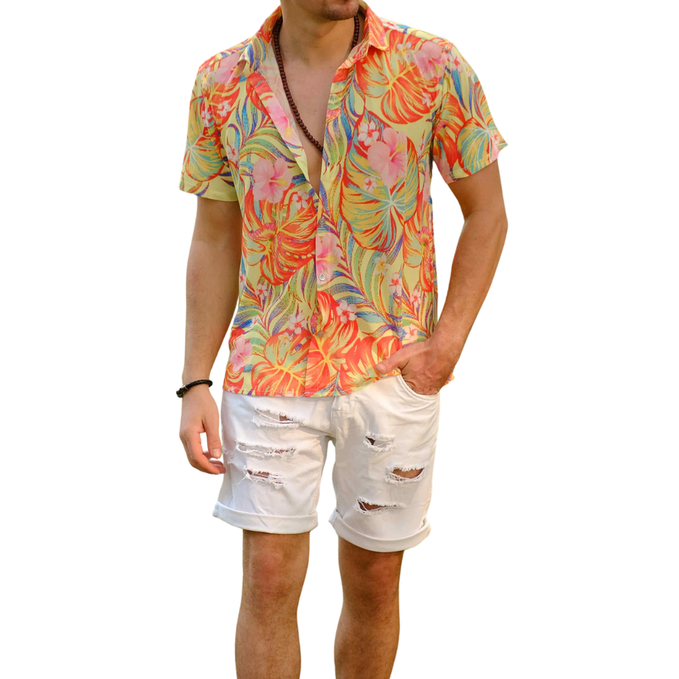 เสื้อเชิ้ตแขนยาวผู้ชาย ทรงปกติ ผ้าฝ้าย 100% ระบายอากาศได้ดี น้ำหนักเบา เหมาะสำหรับใส่ไปเที่ยวทะเล ช่วงฤดูร้อน