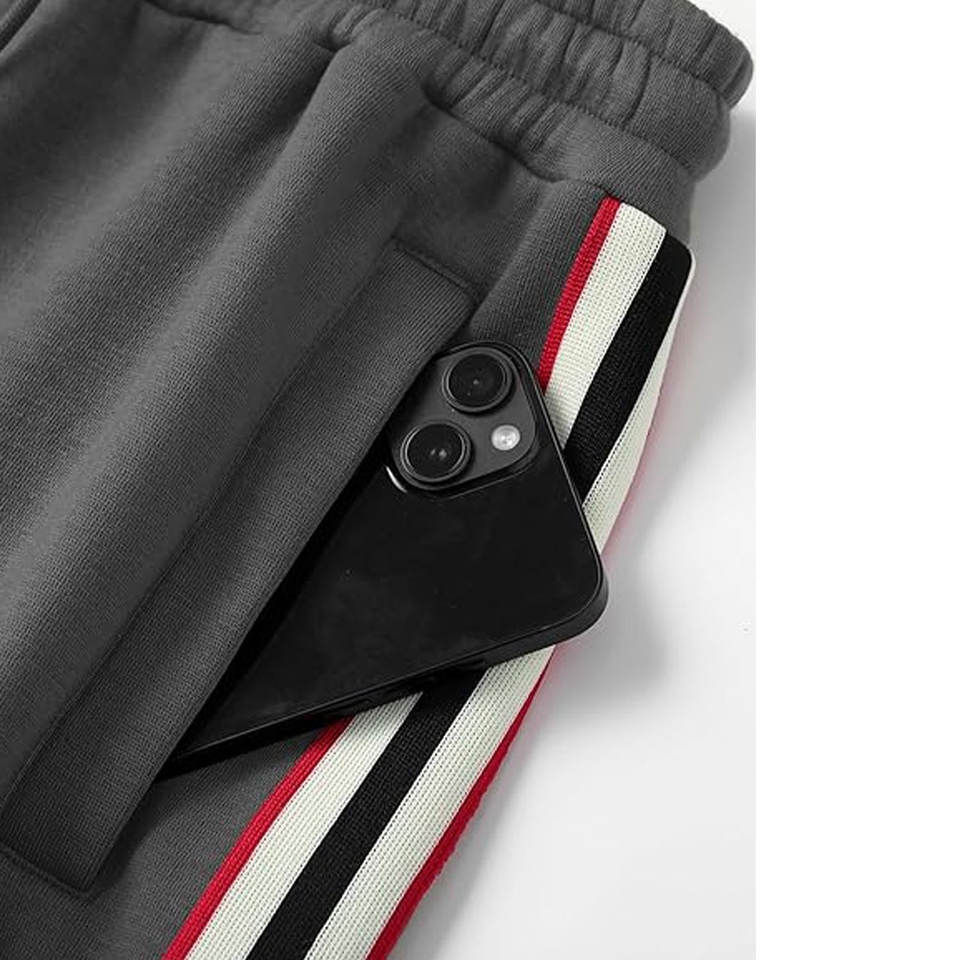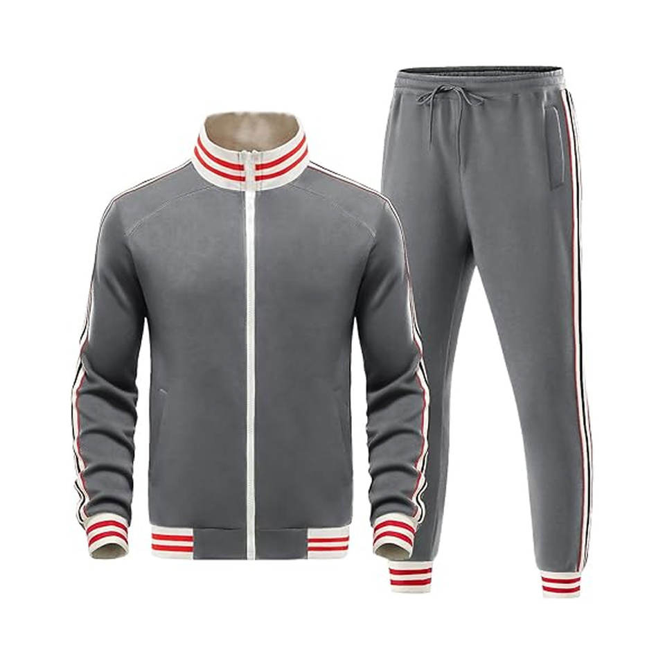 Mens Sports Tracksuit Full Zip Warm Fleece Sweatsuit Two Piece Outfit with Side Stripes for Training and Fitness Grey