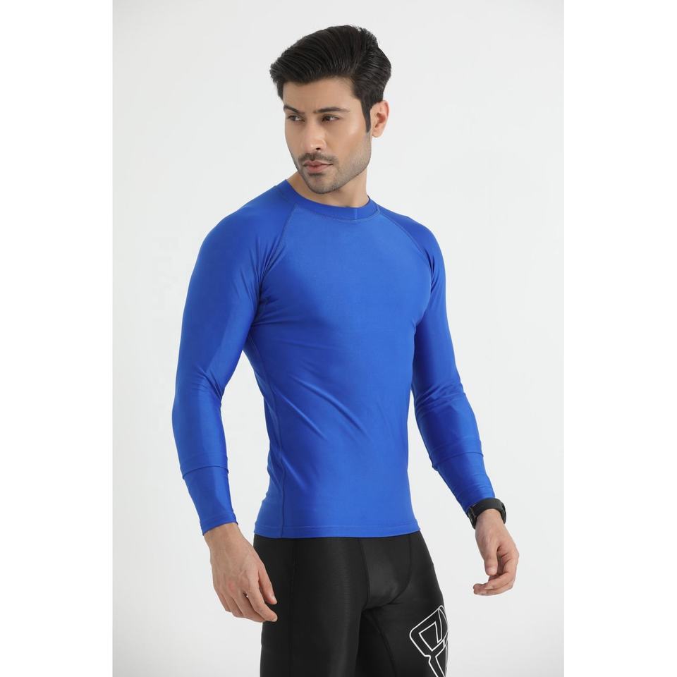 เสื้อกีฬาสำหรับผู้ชายเสื้อออกกำลังกายผ้าโพลีเอสเตอร์รัดรูปแห้งเร็ว