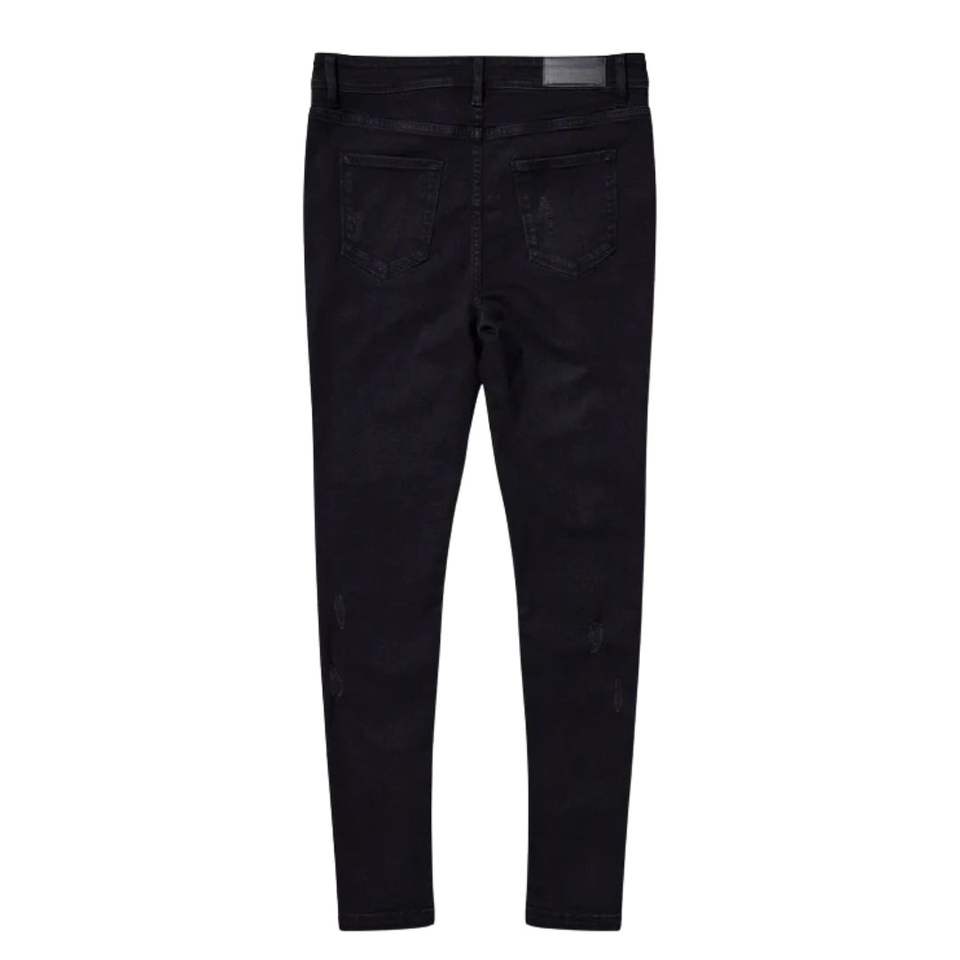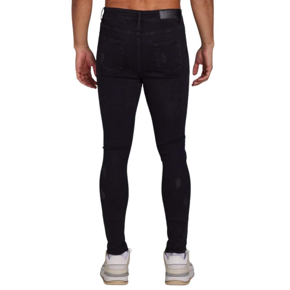 กางเกงยีนส์ผ้ายืดเอวสูงสำหรับผู้ชาย, กางเกงยีนส์ทรงตรงทรงสกินนี่ขาดทรงสกินนี่สีดำ