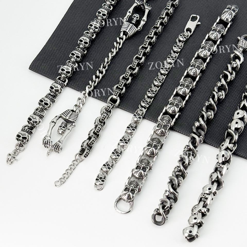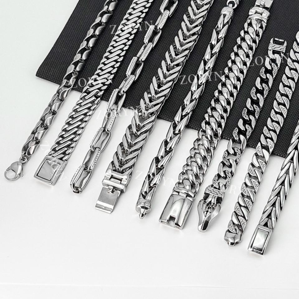 สร้อยข้อมือสแตนเลสสตีลแบบ Cuban Link สำหรับผู้ชาย ดีไซน์หนักแน่น สีดำออกซิไดซ์ สไตล์เรโทร กอธิค พังก์ ไบค์เกอร์ ปรับขนาดได้