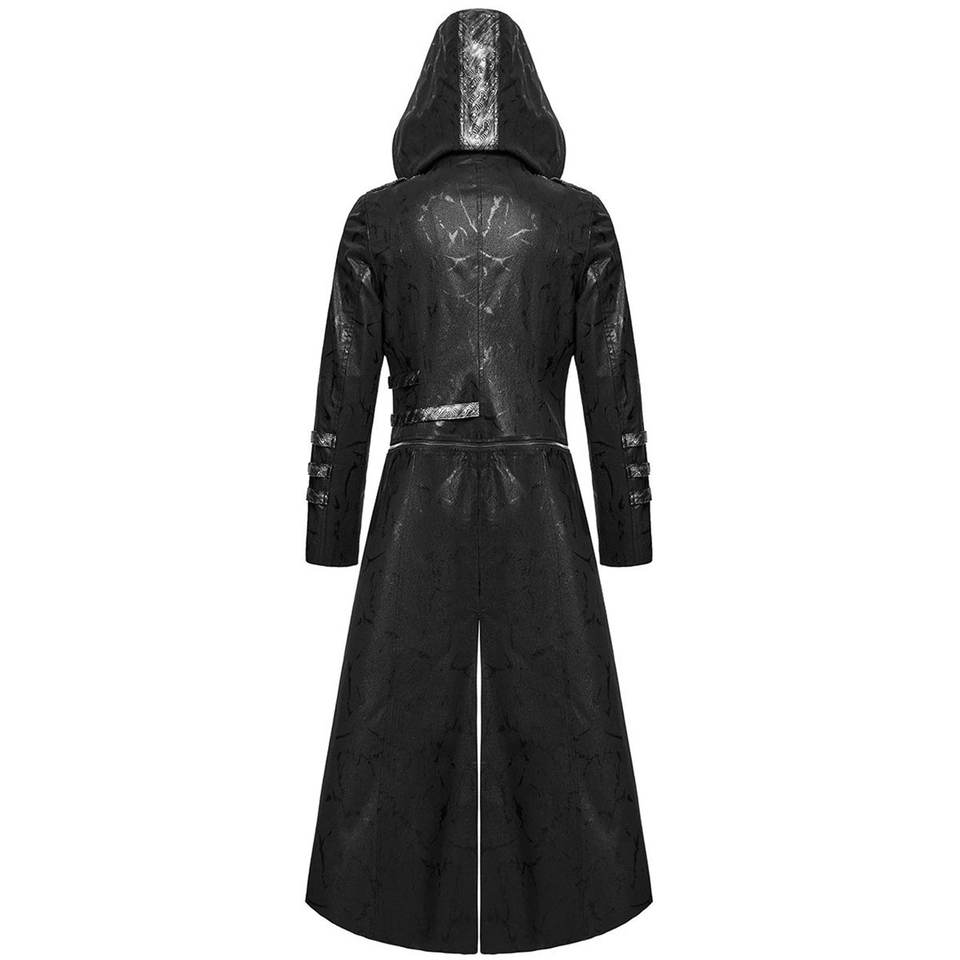Mens Stunning Long Gothic Trench Coat Hooded Punk Jacket Black Faux Leather Steampunk Scorpion Style