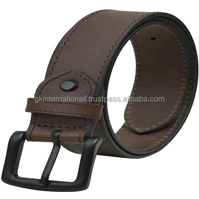 บุรุษสไตล์100% หนังแท้เข็มขัดลำลองสีดำและสีเข้มที่มีปุ่มสแน็ปเย็บทนทานเต็มรูปแบบสำหรับหัวเข็มขัดปรับ