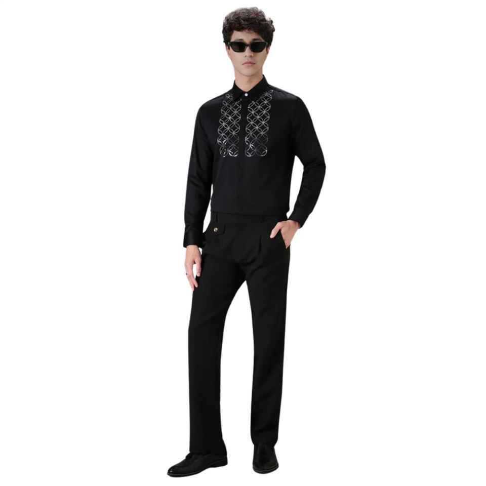 เสื้อเชิ้ตดีไซเนอร์แขนยาวมีสไตล์สำหรับผู้ชายปักเลื่อมทรงสลิมฟิตทันสมัยและผ้าพรีเมียมสำหรับสวมใส่ในงานปาร์ตี้