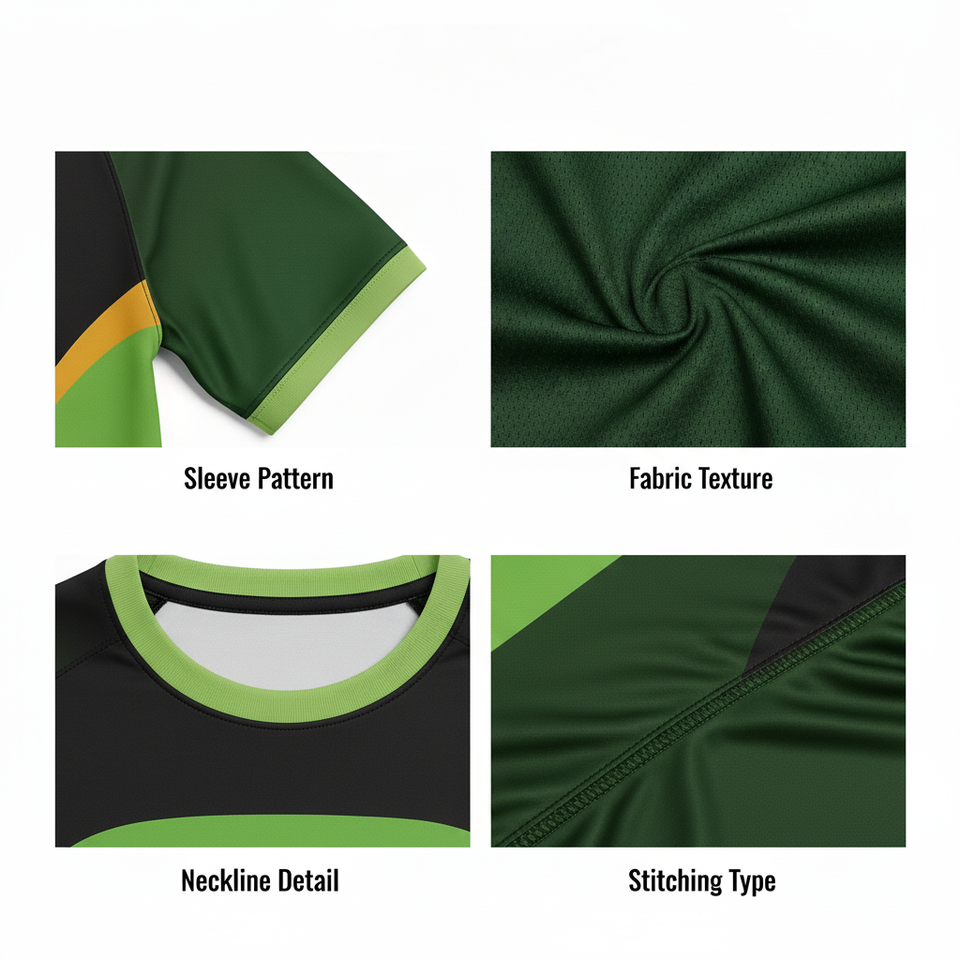 ด้านหลัง, ด้านหน้า, แขนเสื้อด้านซ้าย, แขนเสื้อด้านขวา