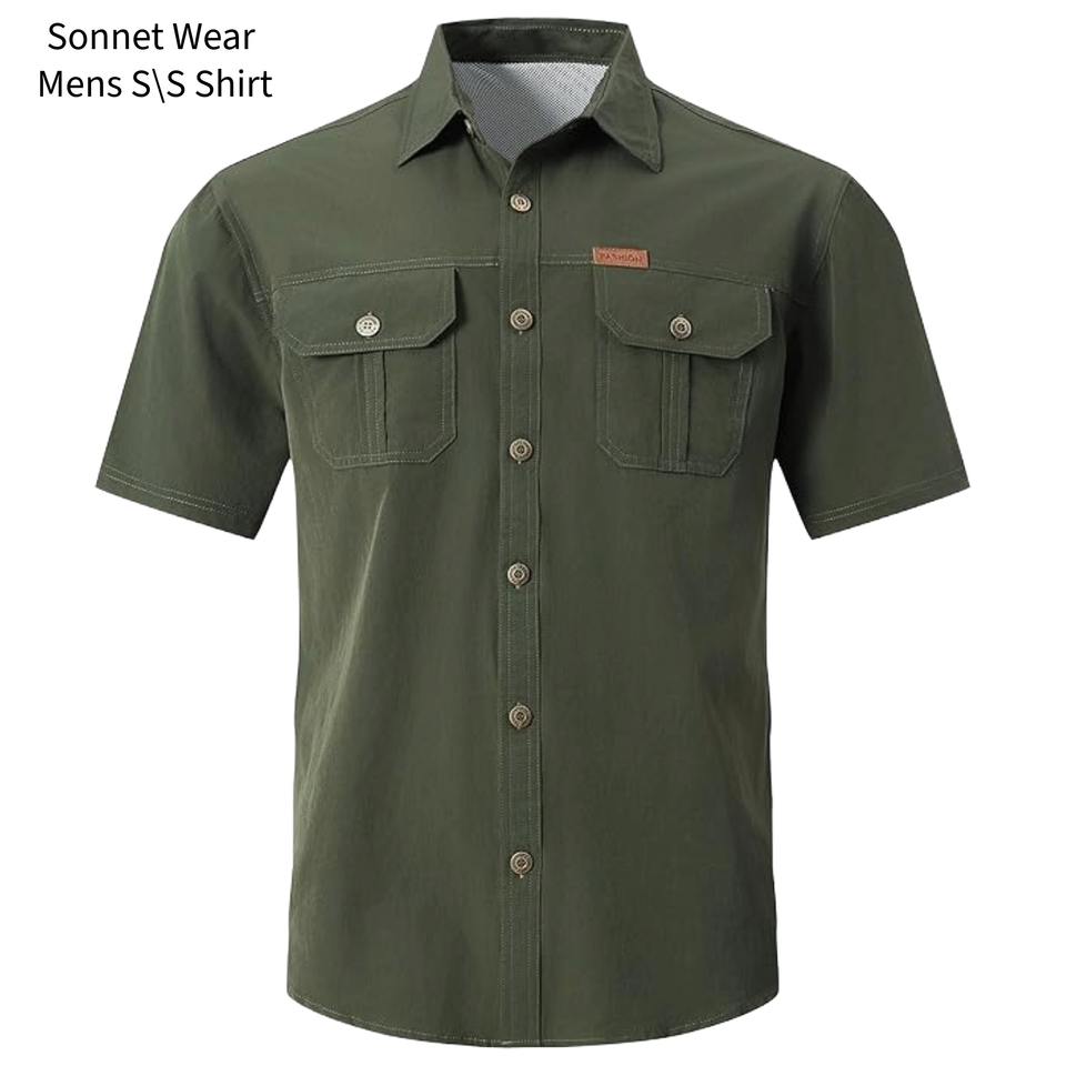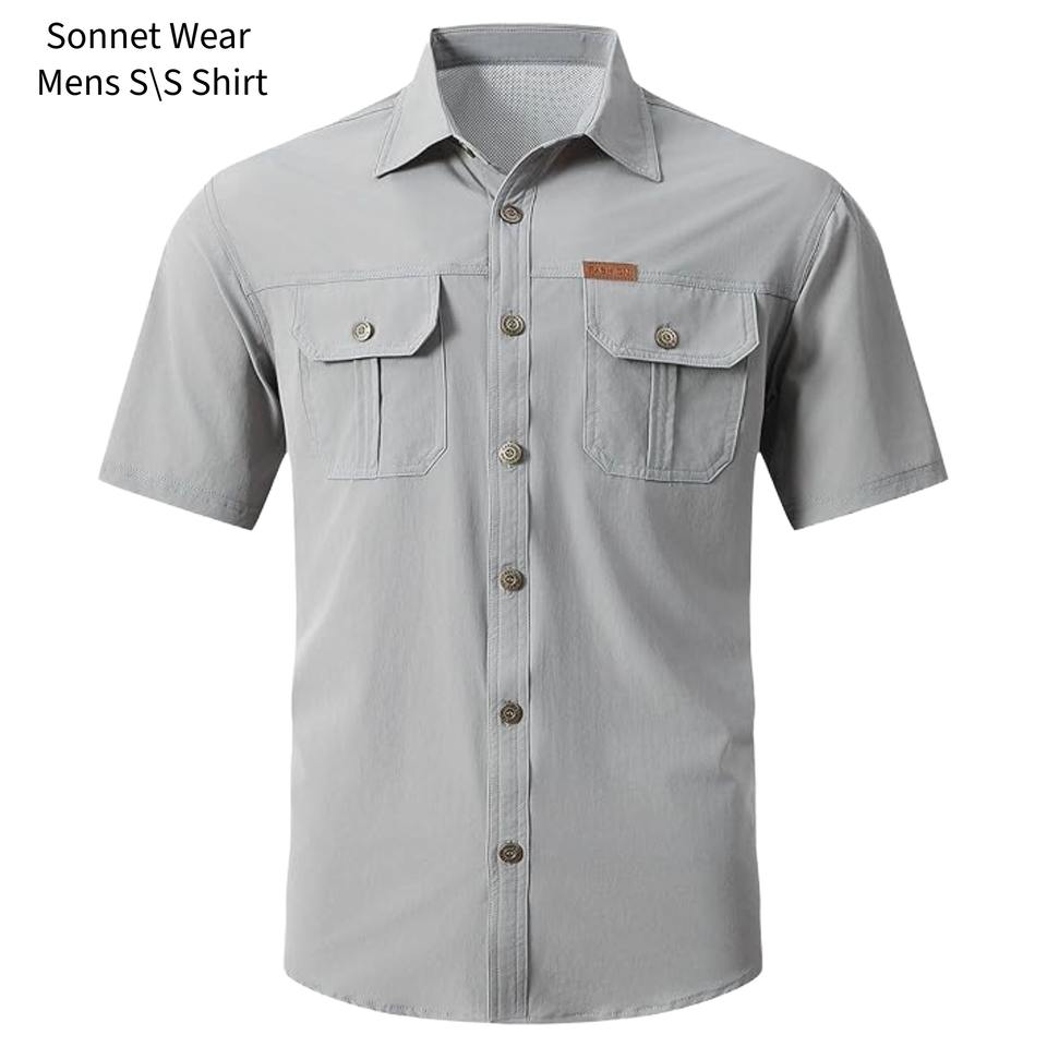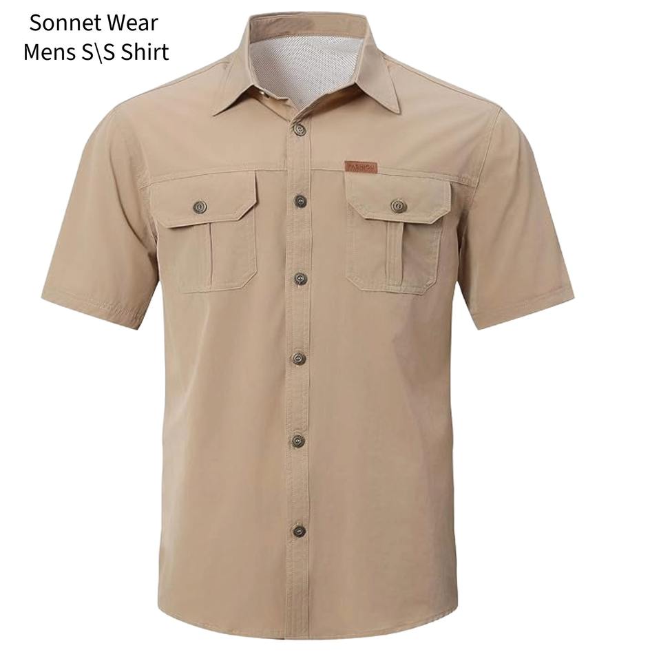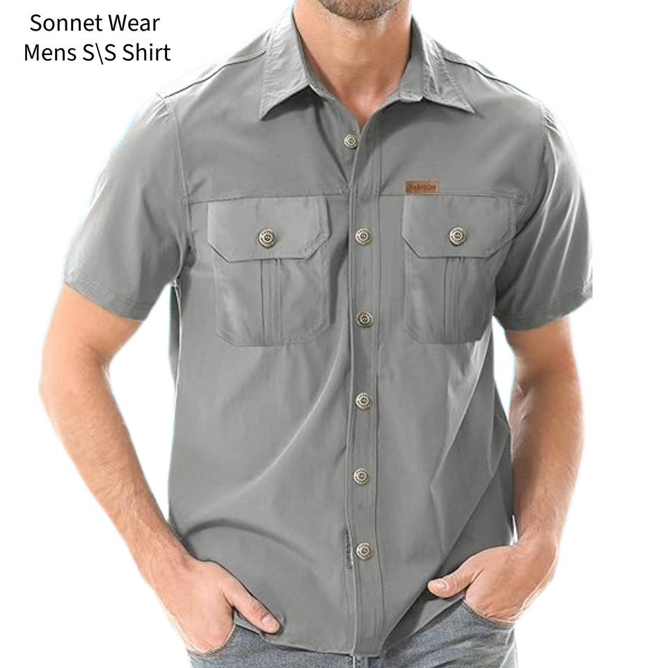 เสื้อเชิ้ตตกปลาป้องกันแสงแดดสำหรับผู้ชาย แขนสั้น สไตล์ลำลอง มีกระเป๋า
