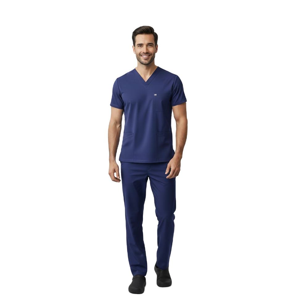 ชุดสครับแพทย์ชายคุณภาพสูง ปรับแต่งได้ ทนทาน สวมใส่สบาย เสื้อคอวีและกางเกง ชุดยูนิฟอร์มคลินิกโรงพยาบาล ผู้เชี่ยวชาญด้านการจัดหา