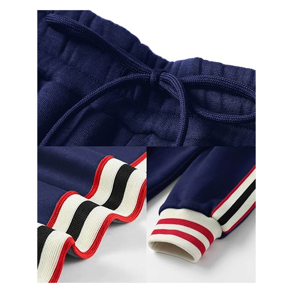 ชุดวอร์มสองชิ้นซิปเต็มสำหรับผู้ชายชุดวอร์มขนแกะลายทางที่สมบูรณ์แบบสำหรับกีฬายิมออกกำลังกายและความสะดวกสบายในชีวิตประจำวันสีน้ำเงินเข้ม