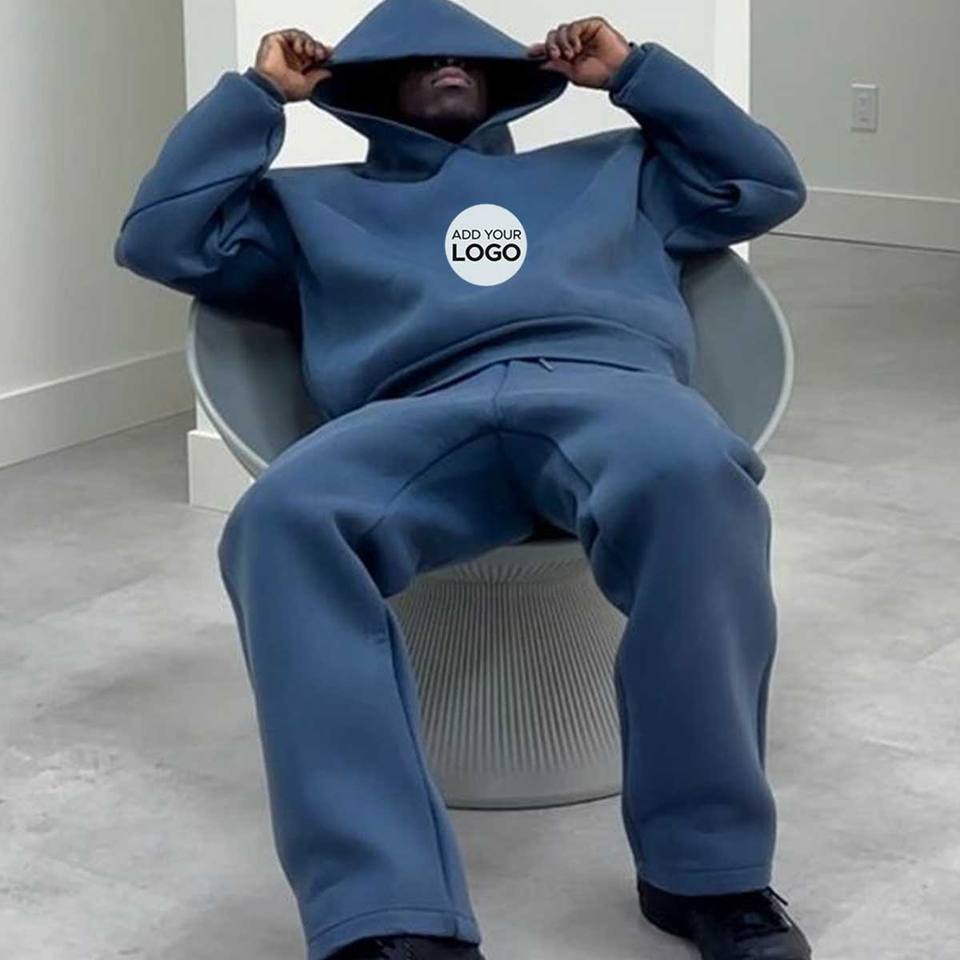 ชุดวอร์มสำหรับผู้ชายชุดวิ่ง2ชิ้นมีฮู้ดชุดกีฬาลายสก็อตทรงพอดีตัวปกติ