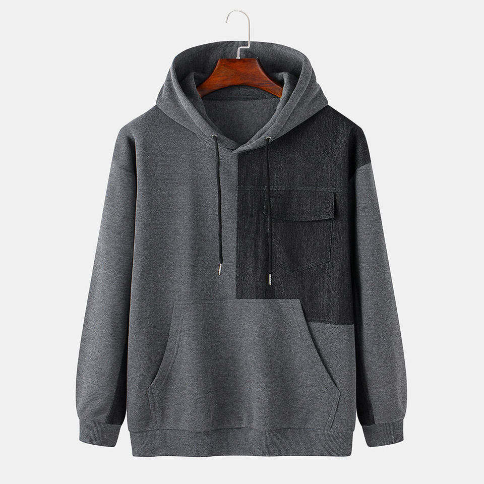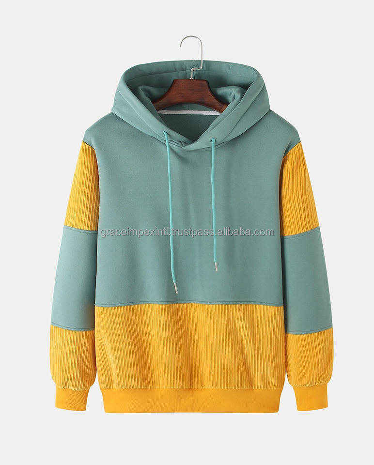 เสื้อฮู้ดผู้ชายสีเขียวอมเหลืองแบบมีซิป บล็อกสี ตัดต่อผ้าถักบุขน แฟชั่นสตรีทแวร์ลำลอง รับผลิตแบบ OEM ODM ขายส่ง