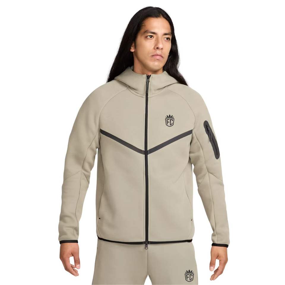 เสื้อแจ็คเก็ตผู้ชายแบบมีฮู้ด ซิปเต็มตัว กันน้ำ ระบายอากาศ รุ่น Windrunner ผ้า Tech Fleece สีกากี น้ำหนักเบา อุ่น เหมาะสำหรับการฝึกซ้อมกีฬา พร้อมลายปัก