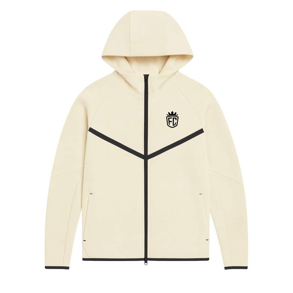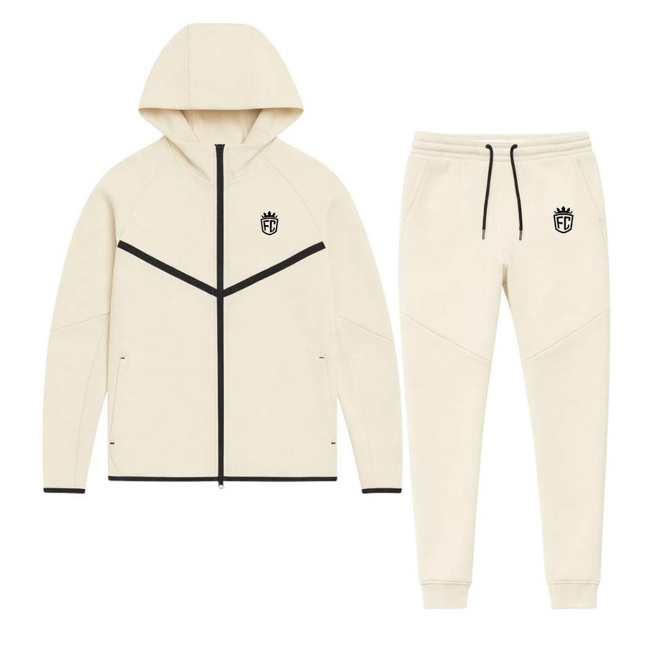 ชุดวอร์มเทคฟลีซวินด์รันเนอร์แบบมีฮู้ดและซิปเต็มตัวสำหรับผู้ชาย พร้อมกางเกงจ็อกเกอร์ ชุดออกกำลังกายสีไอวอรี่