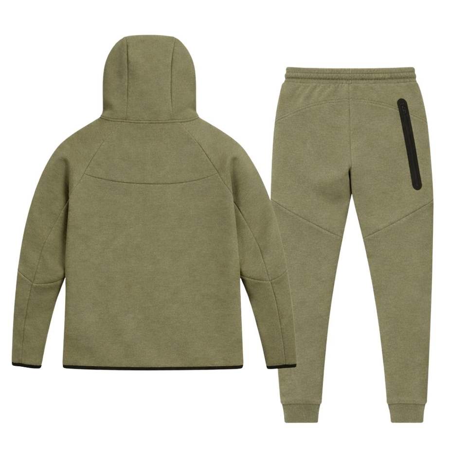 ชุดวอร์มเทคฟลีซวินด์รันเนอร์แบบมีฮู้ดซิปเต็มตัวสำหรับผู้ชาย และกางเกงจ็อกเกอร์ ชุดออกกำลังกายสีเขียวขี้ม้า