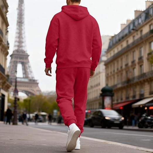 ชุดวอร์มผู้ชายแบบ 2 ชิ้น เสื้อฮู้ดแขนยาวและกางเกงขายาว ชุดออกกำลังกาย