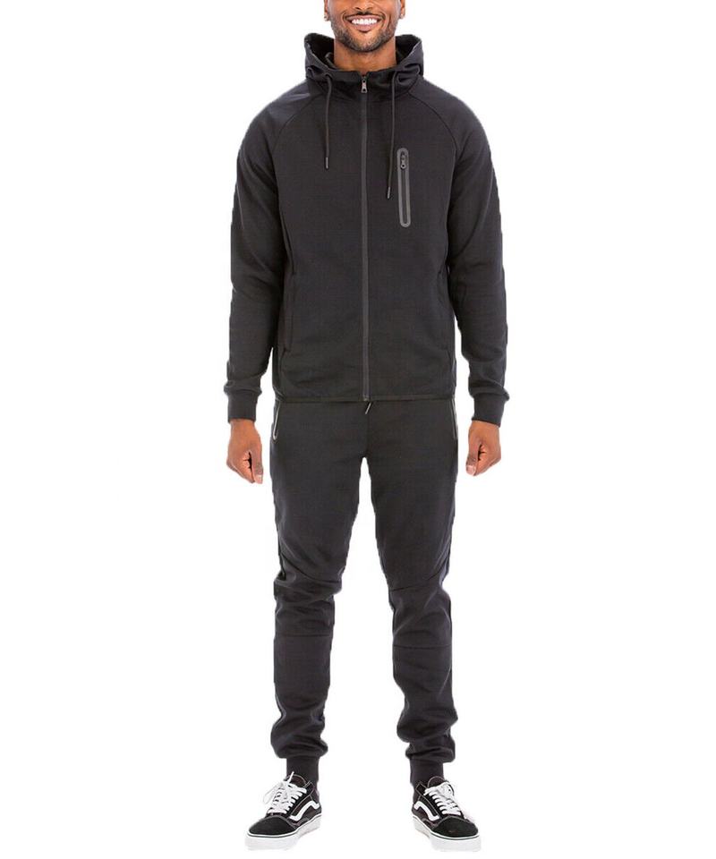 ชุดวอร์มผู้ชายคุณภาพสูง ระบายอากาศ แห้งเร็ว ไซส์ใหญ่ ผ้าเทคฟลีซ ผสมผ้าฝ้าย/โพลีเอสเตอร์ เสื้อแจ็คเก็ตมีฮู้ด กางเกงขายาว ไซส์ S-XL ผลิตจากโรงงาน