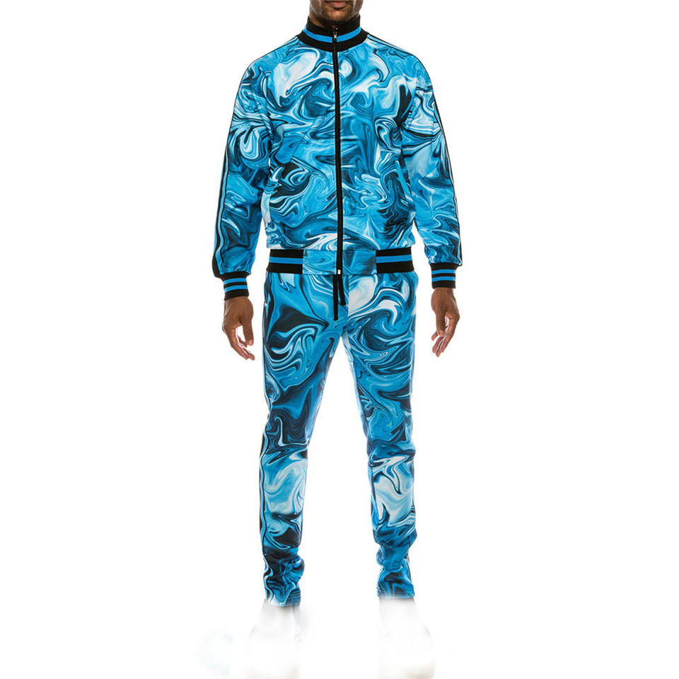 ชุดวอร์มสองชิ้นสำหรับผู้ชายเครื่องแต่งกายแนวสตรีทฮิปฮอปแบบมีซิปรูดกางเกงชุดวิ่งออกกำลังกายแฟชั่นพิมพ์ลายได้ตามต้องการ