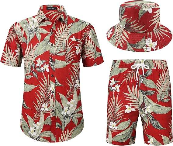 ชุดวอร์มผู้ชาย เสื้อโปโลติดกระดุม กางเกงขาสั้น ชุดลำลอง ชุดกีฬา ชุดเดินเล่นสบายๆ สไตล์ฮาวาย