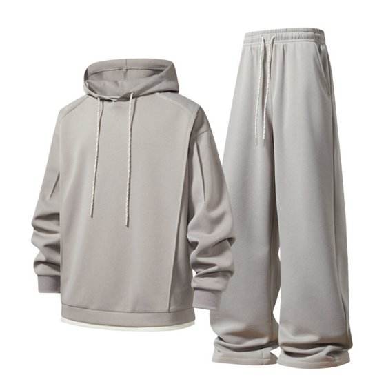 ชุดวอร์มมีฮู้ดพิมพ์ลายสำหรับผู้หญิงไซส์ใหญ่ สีพื้น ทรงปกติ ชุดออกกำลังกาย 2 ชิ้น ชุดวิ่ง ฤดูใบไม้ร่วง ฤดูหนาว