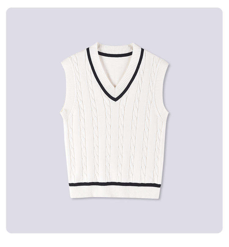 เสื้อสเวตเตอร์ถักแบบสวมหัวคอวีสีทึบสไตล์เกาหลีสำหรับโรงเรียนจบการศึกษา