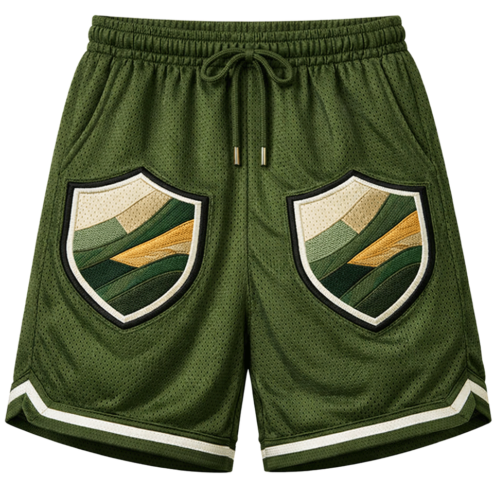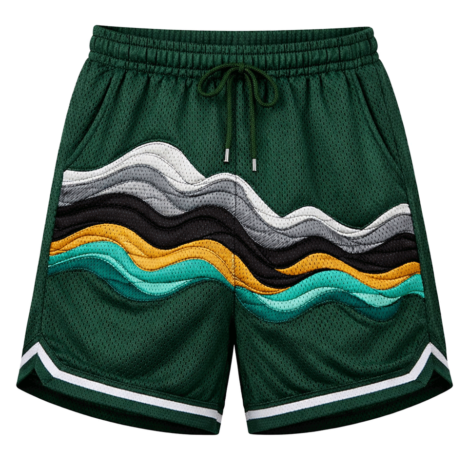 กางเกงขาสั้นผู้ชายแฟชั่นฤดูร้อนผ้าลูกฟูกปักลายกีฬาลำลองทรงหลวมใส่ออกกำลังกายวิ่งฟิตเนสเอวสูง
