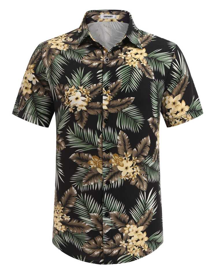 ชุดเซ็ตเสื้อเชิ้ตแขนสั้นลายใบไม้เขตร้อนสำหรับผู้ชาย พร้อมกางเกงขาสั้นเข้าชุด ชุดลำลองฤดูร้อนน้ำหนักเบา
