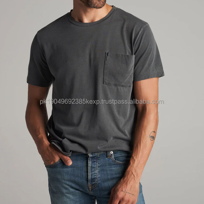 เสื้อยืดผ้าฝ้ายชีวภาพสำหรับผู้ชายเสื้อยืดออกแบบได้เองเสื้อยืดแขนสั้นสำหรับผู้ชายเสื้อยืดโอเวอร์ไซส์มีกระเป๋า